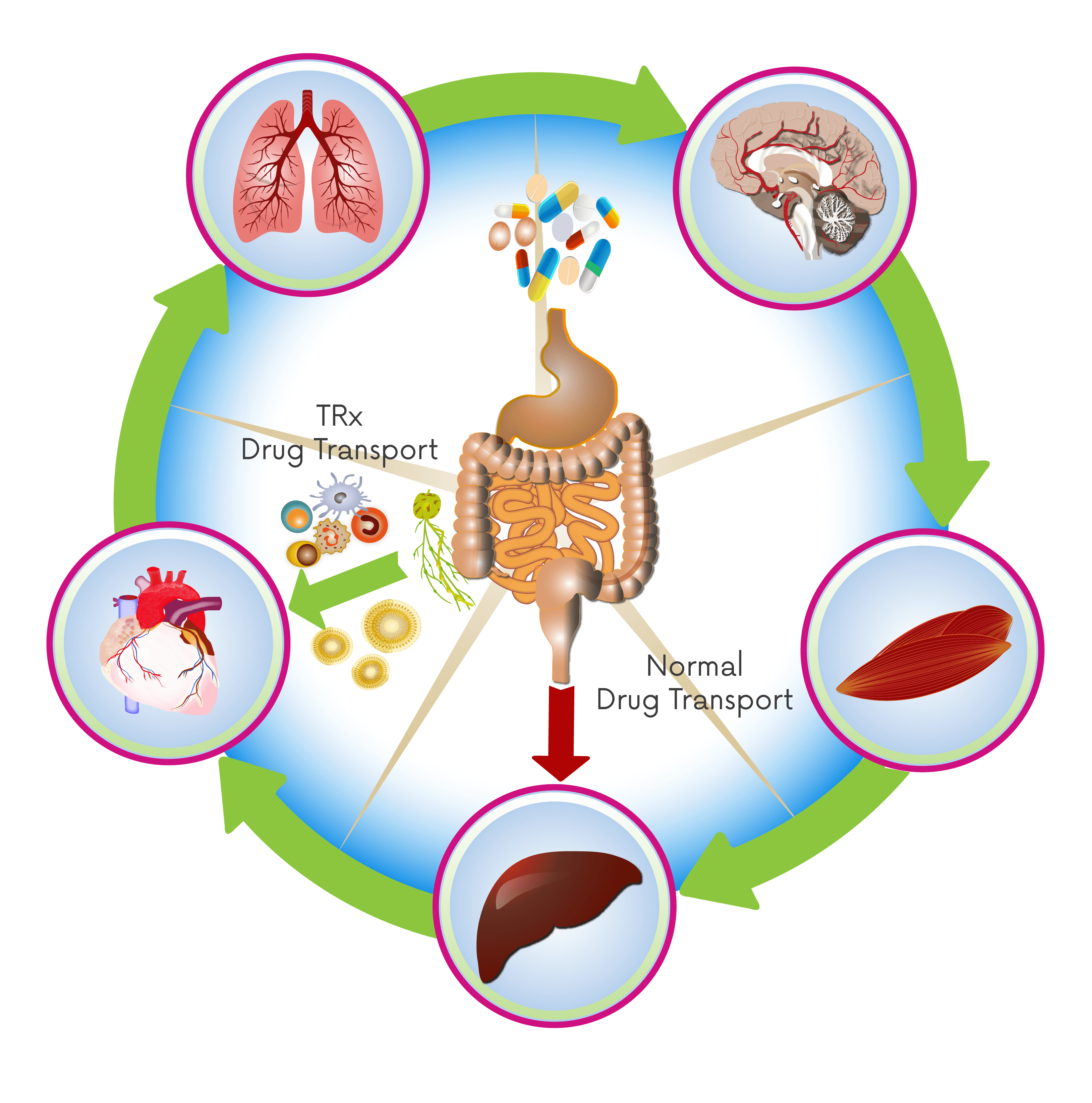 A disruptive advancement in oral drug uptake, trafficking therapeutics directly to the site of disease, reducing the impact of first-pass metabolism and enhancing production of regulatory immune cells. TRx is leveraging these and other benefits across a growing portfolio of co-development and wholly-owned programmes.